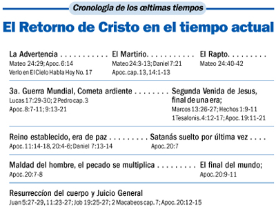 “El día de los días está a la mano. El día del Señor y la venida de Mi Hijo no está lejos. No reconocéis las señales de vuestro tiempo? No habéis leído las palabras de los antiguos profetas?”